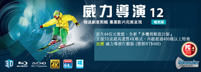 若您極度熱衷於影片創作,是時候將您的多媒體創作帶往一個全新境界!威力導演12內建全新多機剪輯設計師,讓您輕鬆匯入、同步並編排您的多機攝影畫面,最多更同時支援4部攝錄影裝置。此外,全新創意主題設計師將協助您利用影片和相片,快速製作絕佳3D動態影片。